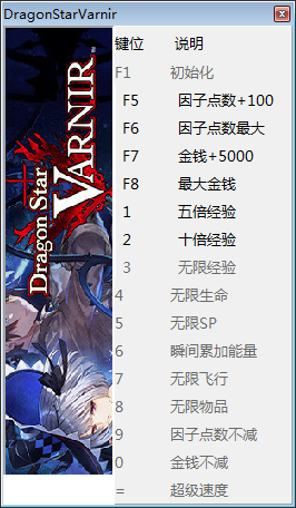 1、无限物品:开启后,从 菜单[I键]进入道具界面生效(仅对于数量大于1的物品)。
