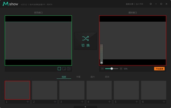 4、现在就开始一场高质量的直播吧,最多六路视频流供您随时切换作为直播画面。