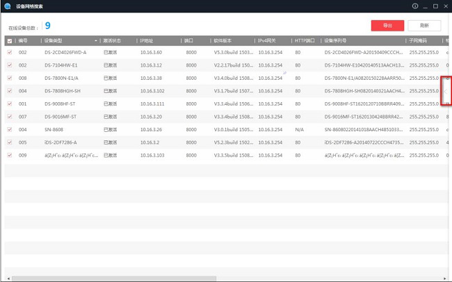 2、可显示相关设备的具体信息,包括设备类型、激活状态、IP地址、端口、IPv4网关、HTTP端口等