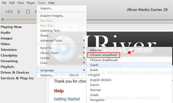 1、双击打开JRiver Media Center 28,选择Tools工具选项。
