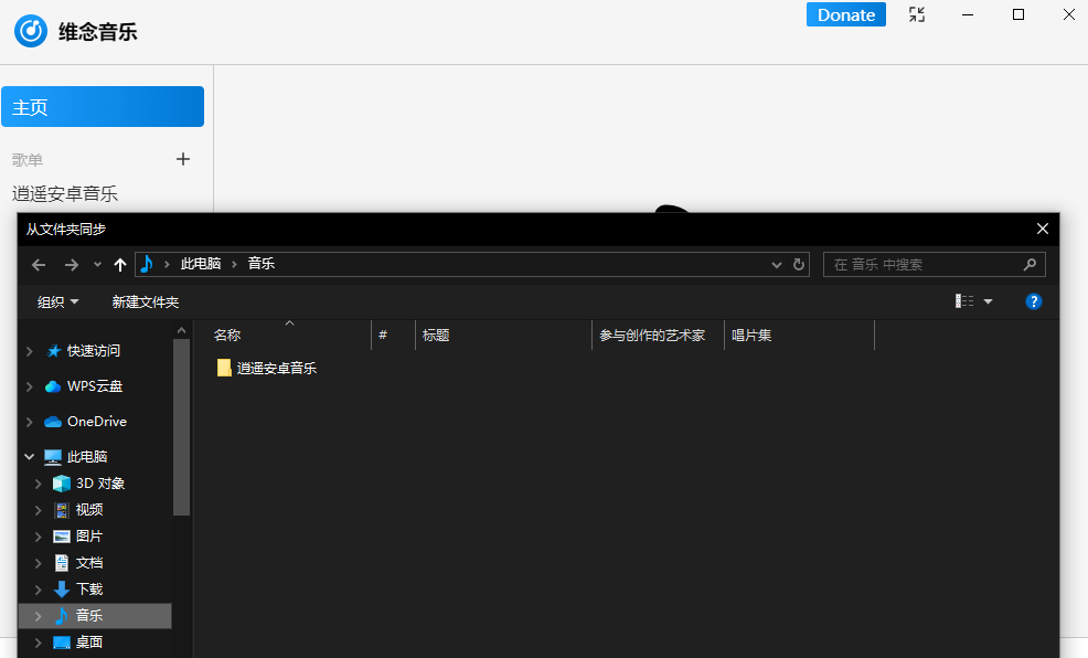 点击“从文件夹同步”,软件就会同步本地的音乐内容