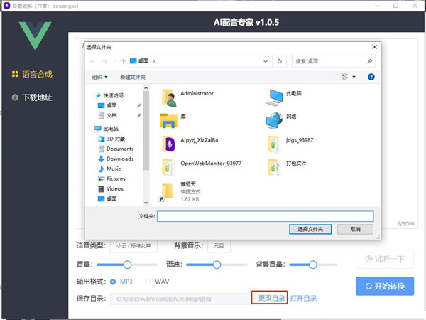 4、可自定义设置保存目录,便于保存转换后的语音文件
