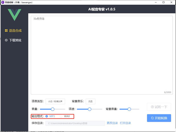 5、支持试听,可试听转换后的语音文件