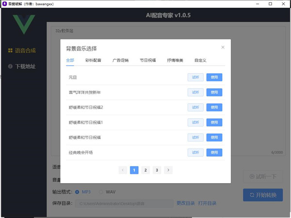4、提供不同的语音类型和背景音乐,可供自由选择