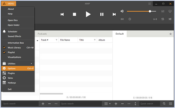 2、点击左上角的菜单选择options进入设置界面