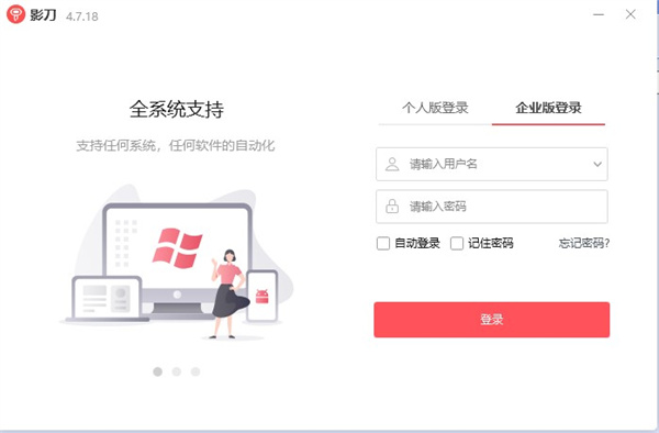 影刀rpa官方版是一款软件机器人,软件可以模拟人的各种操作,在任何应用程式上进行鼠标点击、键盘输入、读取信息等操作,释放人的有逻辑规则的、重复性的工作,驱动企业快速“流程再造,降本增效”。用户通过影刀RPA可以设计出各种自动化软件工作方案,让软件帮助你自动完成重复的工作,有效提高工作效率,适合需要批量执行任务的人员使用,例如财会领域,关于公司账上的钱数问题,软件可以模拟员工全自动化操作,从自动登录各大银行,到自动收集数据,自动做成报表 ,然后自动给老板发邮件,全程无人自动执行,还有在招聘领域,影刀RPA可以帮助人事部门自动进行简历搜寻、简历跟踪归档、工资单管理、时间与出勤管理、教育培训、自动办离职等。除此之外,软件还支持任何网页的自动化,如网页JS脚本,数据提取,数据抓取、Web表单填写、网页操作,API调用等,轻松实现自动化的Web任务,包括在系统之间进行数据传输、任何桌面软件或Web应用程序进行交互、发送电子邮件、处理各种文档和文件夹、在屏幕上搜索图像、数据库操作、Office、微信/钉钉擦操作等,有需要的朋友欢迎下载体验。