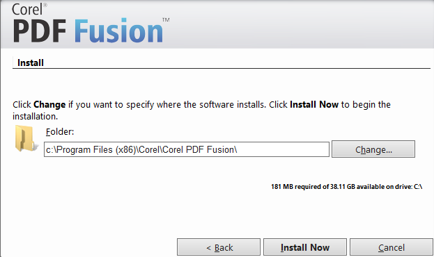 4、软件默认安装目录为【c:\Program Files (x86)\Corel\Corel PDF Fusion\】可以自行更改;