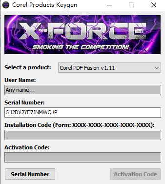 3、打开注册机,选择xfcwp9.exe开始,点击右下角serial number得到序列号,再将序列号复制到软件框中;