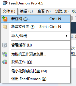 2、回到FeedDemon界面,点击左上角文件——新订阅。
