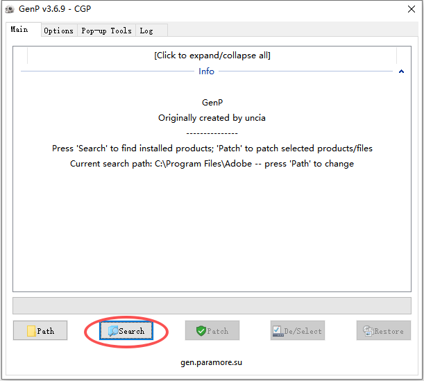 8、如果一开始安装路径是默认的,点击Search就可以下一步;如果你不是默认安装路径,点击Path,选择软件安装路径,在下一步,同理;
