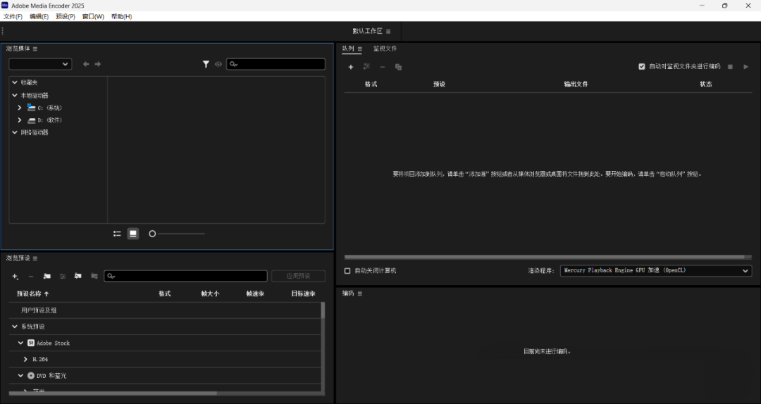 Adobe Media Encoder 2025中文版Adobe公司推出的一款音视频编码工具,它可以让用户轻松的将多种设备格式的音频视频进行导出,且提供丰富的编码格式,让您可以轻松的将视频文件无损压缩为想要的格式文件。ME2025软件再功能为大家提供了全新的色彩管理与180VR视频功能、应用场景分析功能以及目前火热的Ai功能,通过这些全新功能大家可以更加轻松、高效率的完成创作!