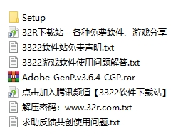 6、打开最开始解压的文件夹,找到【Adobe-GenP.v3.6.4-CGP.rar】进行解压,随后运行【AdobeGenP.exe】;
