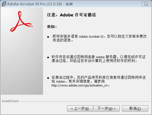 1、首先鼠标双击右键解压软件压缩包,然后得到Acrobat XI Pro 11.0.18.exe软件,开始加载软件安装