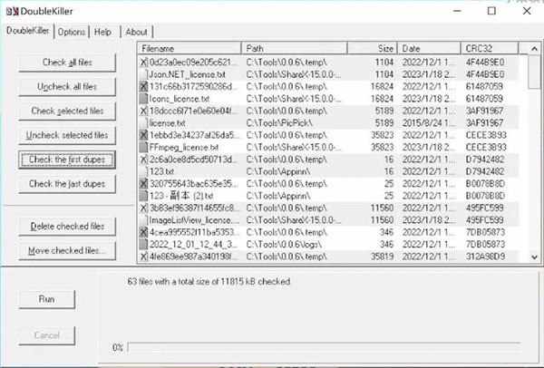 3、勾选 Check the first dupes 就能选中第一个重复文件,然后再勾选 Delete checked files 就能把重复文件删除啦。