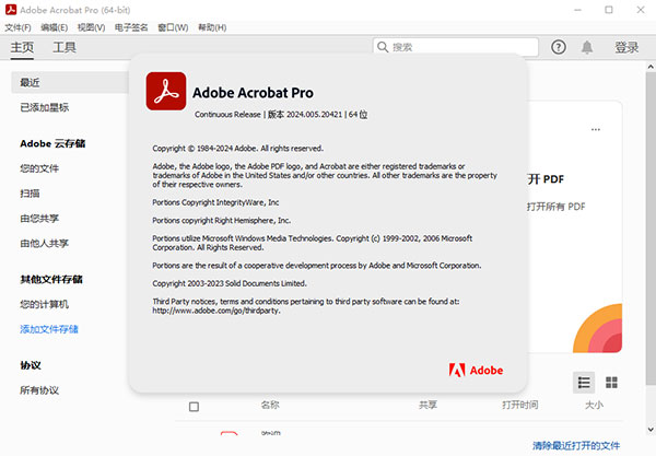 Adobe Acrobat Pro DC 2024中文版是Adobe公司推出的一款功能强大的PDF编辑和阅读软件,它将全球最佳的PDF解决方案提升到新的高度,配有直观触控式界面,通过开发强大的新功能,使用户能在任何地方完成工作!Adobe Acrobat Pro DC 2024新增了无缝请求电子签名、从 Microsoft Office 应用程序创建 PDF、使用 Outlook PDFMaker 将电子邮件作为 PDF 链接共享以及发现 Acrobat 中的 Adobe Express等功能!加上原有可利用Photoshop强大的图像编辑、将任何纸质文件转换为可编辑的电子文件功能,可极大程度上提高用户的工作效率!