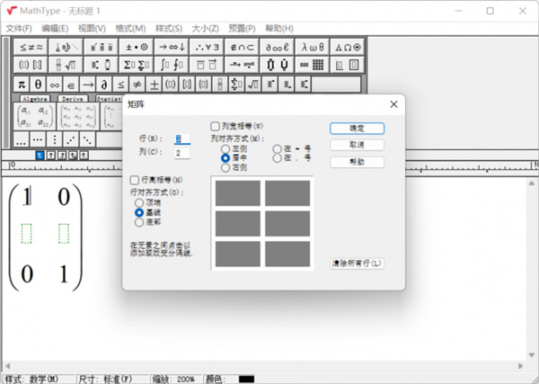 5、除此之外,还可以在更改矩阵界面中直接对矩阵进行定义。