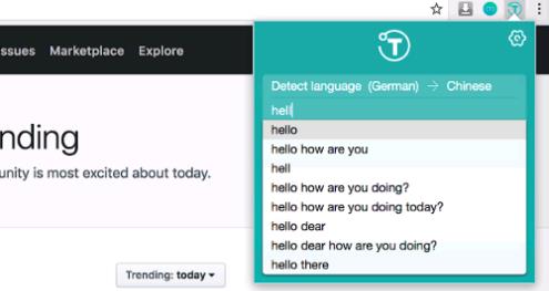 2、在框中输入单词或句子即可翻译,插件采用谷歌翻译接口,翻译精准无误
