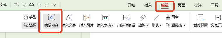1、首先我们需要导入一个PDF文件,点击上方的编辑选项,选择编辑内容。