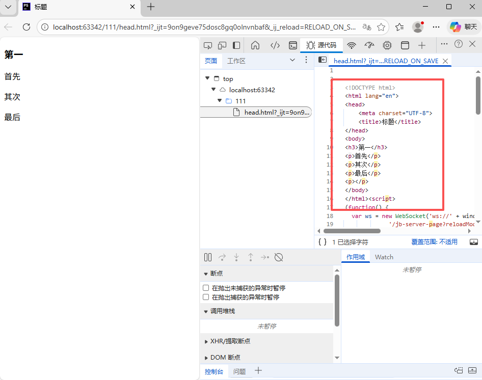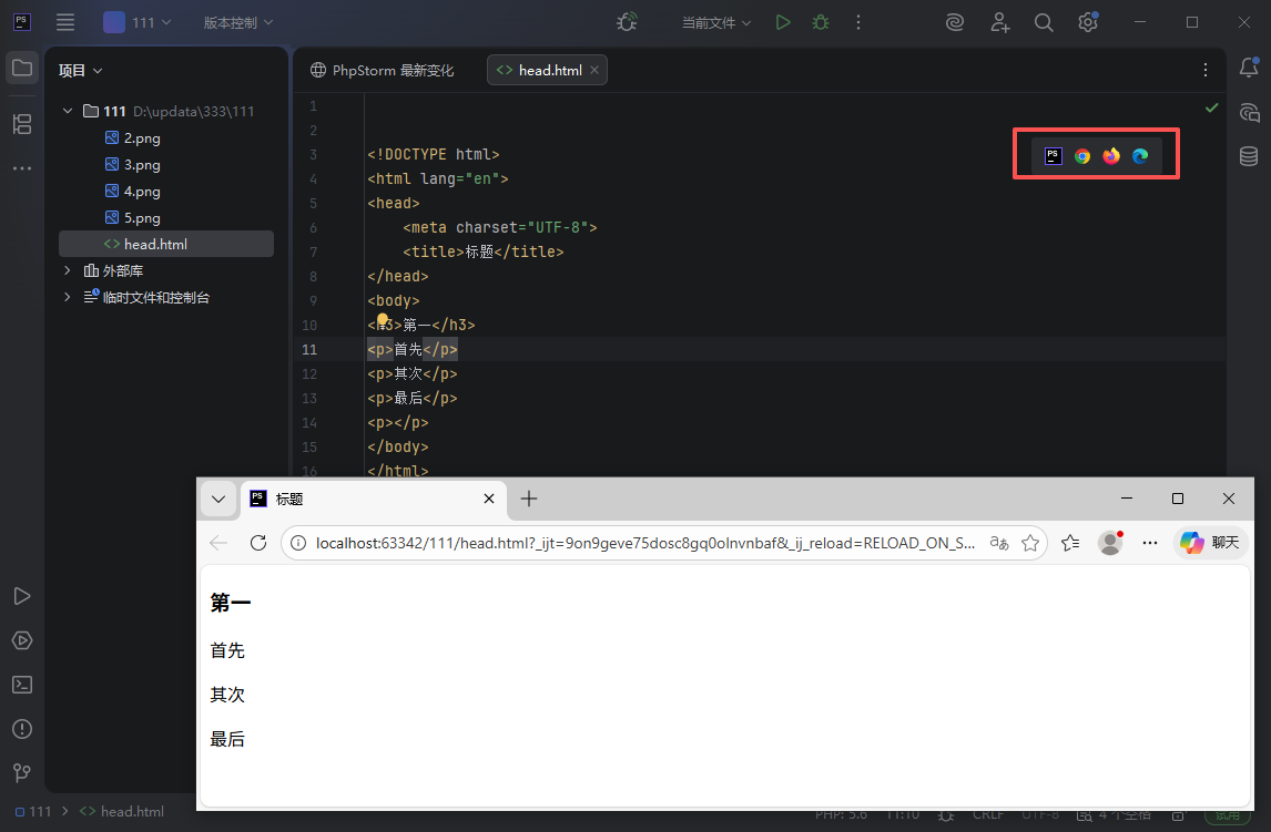 5、输入相关代码,随后在右上方可以看到相应的浏览器浏览,内置浏览器需要自行下载插件。