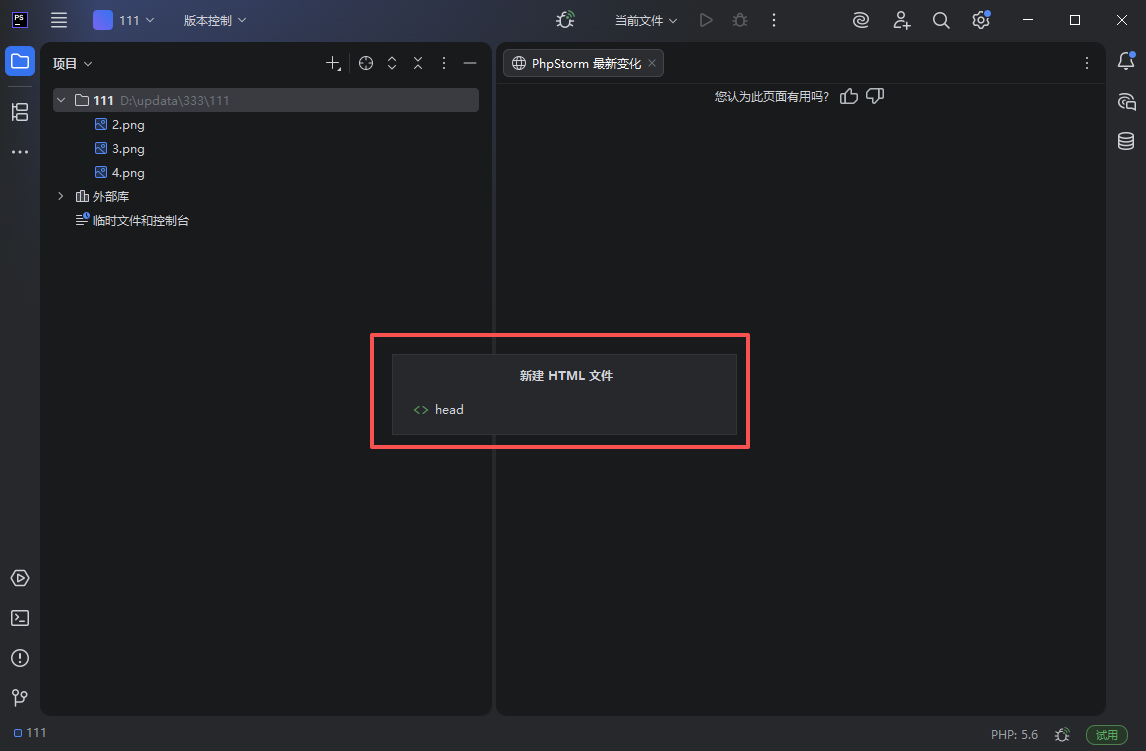 3、可以根据需求自由创建文件类型,以HTML文件为例。