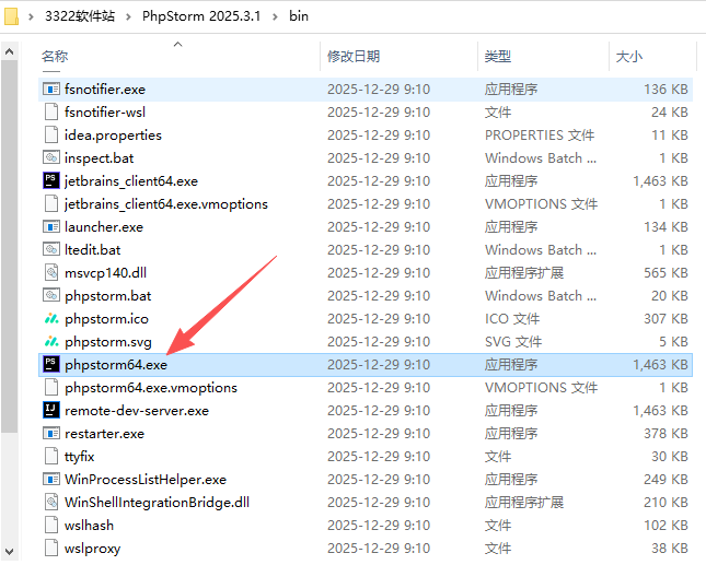 PhpStorm 2025.3.1\bin\phpstorm64.exe。