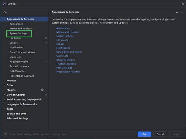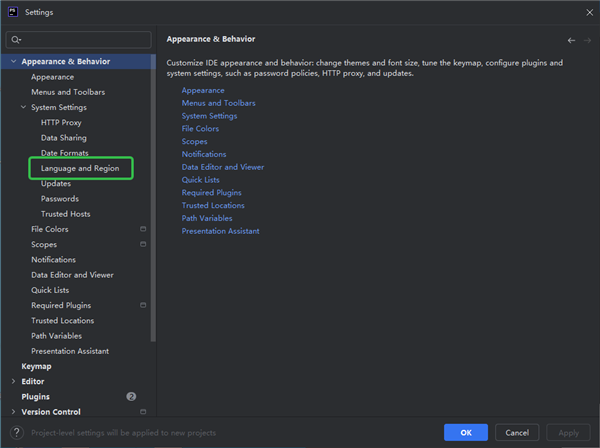 3、点击【Appearance & Behavior】。