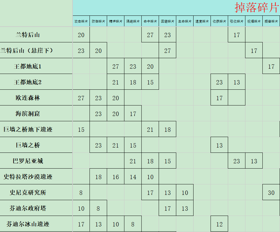 美德传奇F复刻版碎片掉落分布