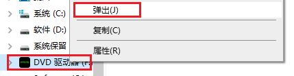 3、右键点击DVD驱动器,选择弹出。