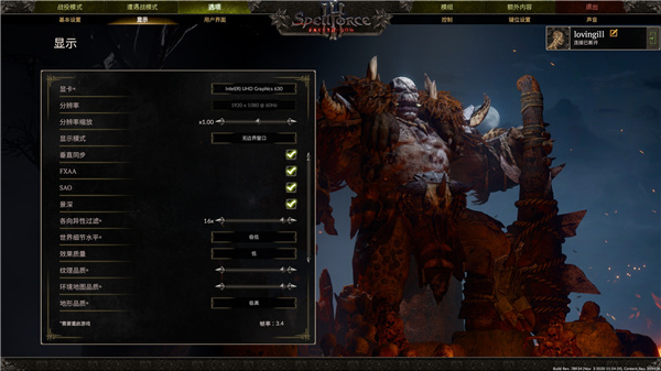 5、再次进入游戏为中文,点击设置进入显示设置可以调整游戏的画质、分辨率等;
