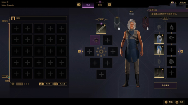3、玩家可以按返回键可查看角色装备,以及背包;