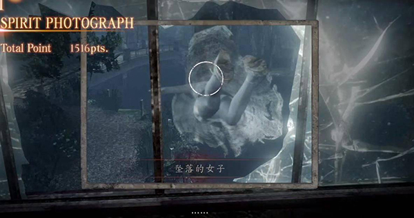 返回2楼,去被锁住门的那里,路中会有个怨灵破窗而入,打倒他入手【脏的发黑的笔记 三】,然后来到破碎的窗户边,举射影机等待,听到女人惨叫大约4秒后会有【坠落的女子】落下,时机不太好把握,玩家可以在心中默默数一下数,然后用四连拍抓拍。