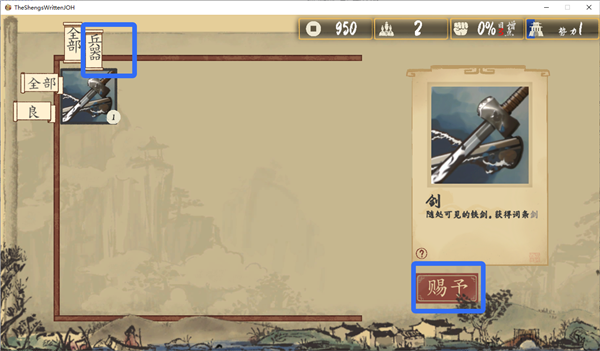 2、点击【兵器】,选择需要更换的兵器,点击【赐予】。