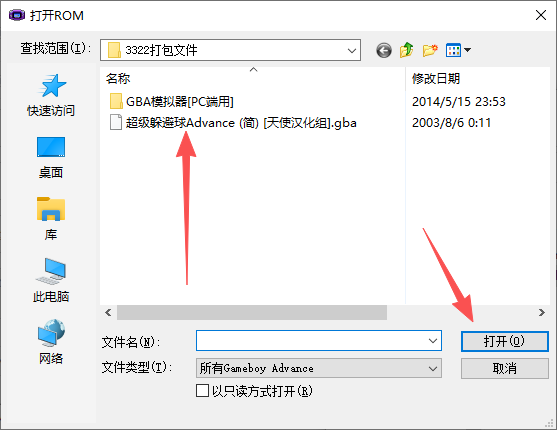 1、解压后,得到GBA模拟器,和超级躲避球游戏文件;