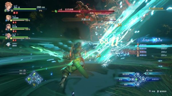 在游戏中连续攻击命中敌人会上涨其昏厥槽,达到最大值后将出现连锁时机,这时按下对应按键即可触发一次与队友协同进行攻击的连锁攻击。