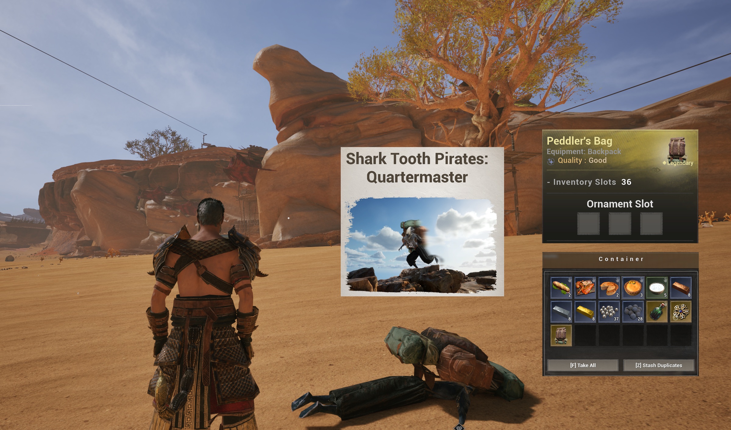 36格背包可在沙漠平原和灼热平原的鲨鱼牙海盗军需官处获得。他可在三个地点找到。