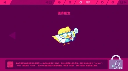 来自节奏医生的佩吉医生化身精灵——每成功击退累计7个敌人,将为主角回复2点生命值,且第七次命中必定为“Perfect”;“Miss”判定变为“Great”;若Note为音符或红心则自动接住。对乐谱(长按)、障碍(齿轮)和连打敌人无效。