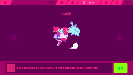 每当主角击退来Boss的攻击时,小龙女将帮助主角获得30%的额外分数。