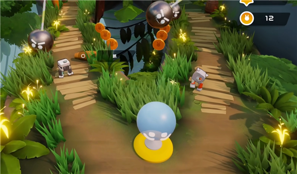 1、进入知只大冒险游戏中,经过剧情和新手关卡后,来到发光森林,需要先将这个球运到前方去。