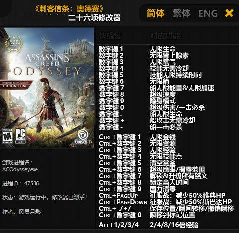 点击简体、繁体、English,可以切换语言(切换语言后修改器将把该语言设置为默认语言)点击音乐图标,可以开启/关闭音乐,游戏开始后会自动关闭音乐。