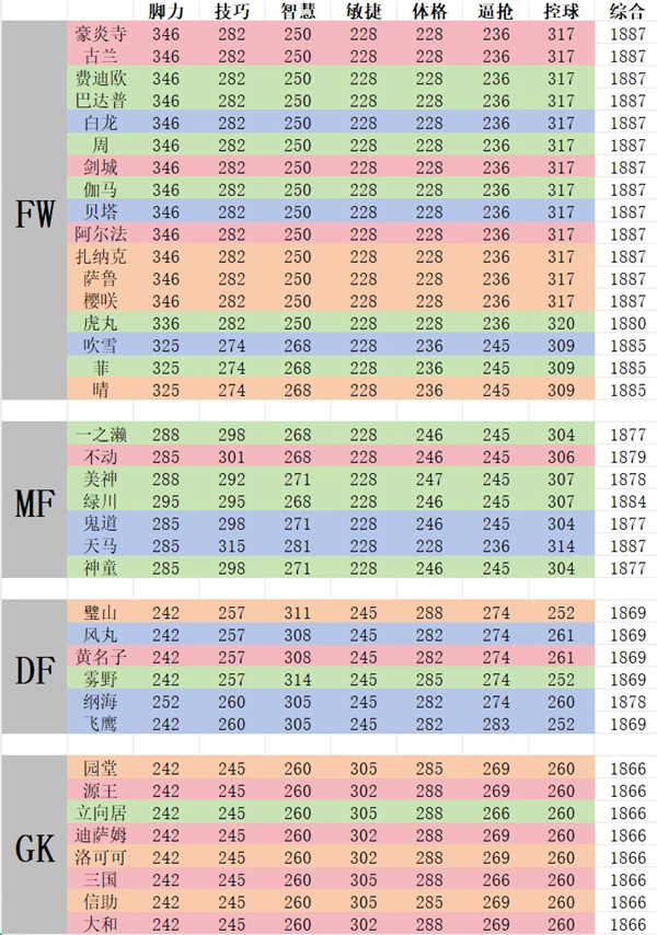闪电十一人英雄们的胜利之路电脑版人物数据