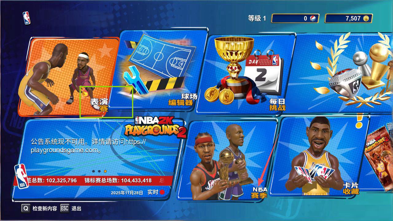6、随后玩家可以自由选择比赛模式,有表演赛和NBA赛季。