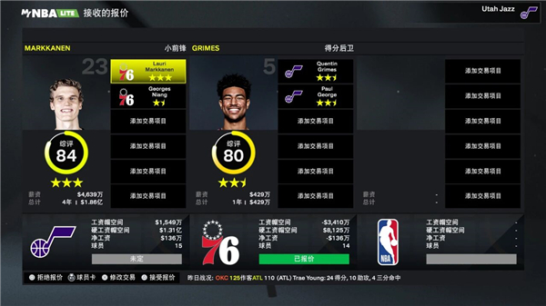 此外经理模式还可与其他球队进行球员交易,可轻松组建自己的梦之队。