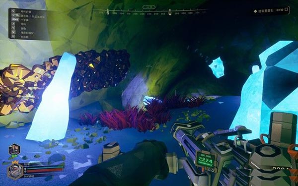 游戏主要的玩法就是FPS+采集,训练关这里,因为是在地下,所以很黑,
