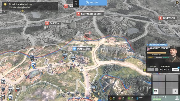 您将通过选择作战计划开始游戏,概述您在美国或英国公司带头进攻罗马的意图。诸如第一特种服务部队或英属印度炮兵等战役集团将向您展示独特的部队,以在动态战役地图上粉碎轴心国。