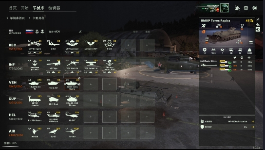 编队多样性:围绕侦察单位、步兵、战斗载具、支援单位、直升机、战机六大类展开,有超过300种作战单位可供选择。