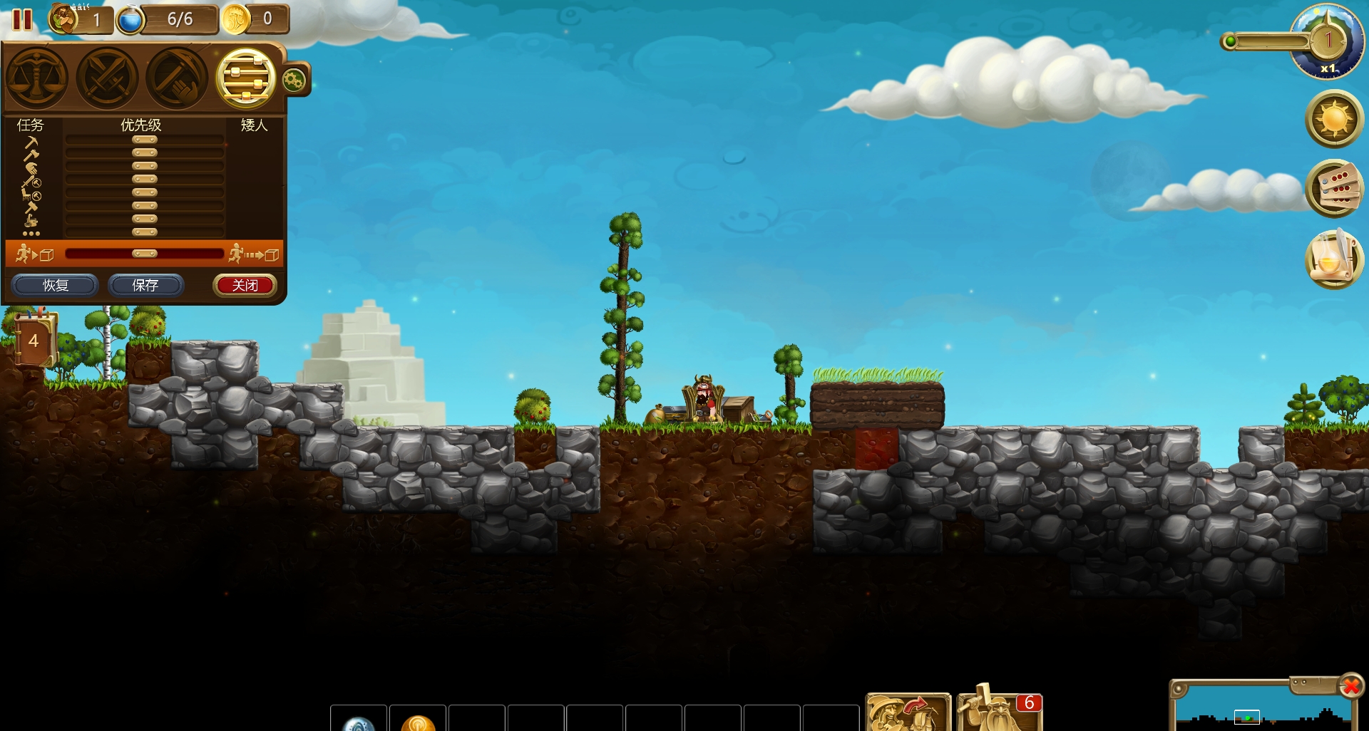 3、选择各种物品和建筑物,建造一座牢不可破的堡垒,防御矮人夜间入侵。