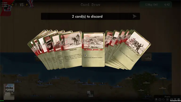 需要弃牌时,游戏画面会明显变暗,并出现一个标注弃牌数量的专用按钮。玩家手牌将弹出显示,鼠标悬停在卡牌上方时会放大展示(以确保更清晰的辨识度)。