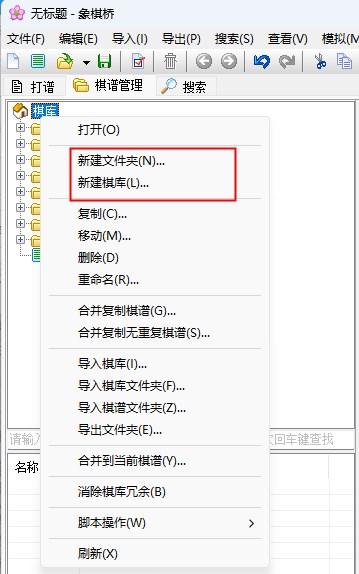 2、以棋库为基本文件单位,可将同类棋谱放到一个棋库里,可将同类棋库放到一个文件夹中。