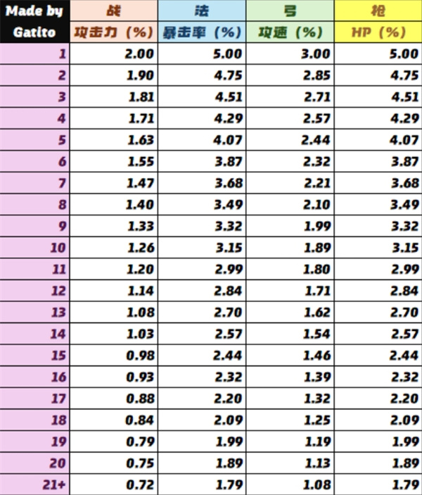 祝福献祭基因和加成对照表: