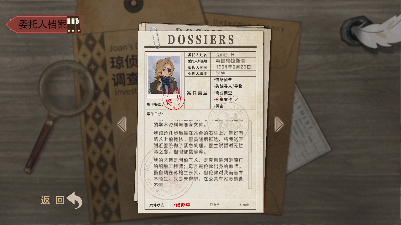 5、游戏中还可以查看以往的各种案件档案,玩家可以从中选找到些许线索。